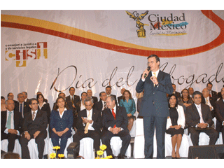 El jefe de gobierno del Distrito Federal, Marcelo Ebrard, celebró con un desayuno el Día del Abogado, en el cual fue galardonado con la presea 'Gabino Fraga' que le otorgó el Consejo Nacional de la Abogacía por sus aportaciones a la ciudad de México. Al evento asistieron, entre otros, el procurador capitalino, Miguel Ángel Mancera, el presidente del TSJDF, magistrado Edgar Elías Azar y la presidenta de la Comisión de Gobierno de la ALDF, diputada Alejandra Barrales.